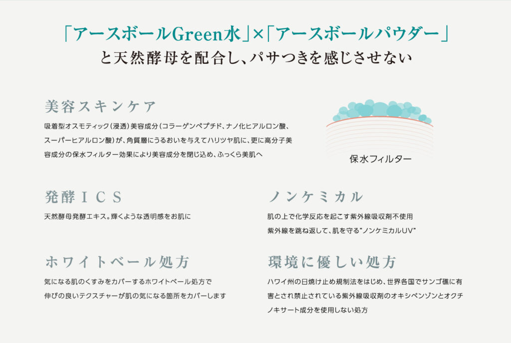 「アースボールGreen水」×「アースボールパウダー」を使用し、すぐにうるおってお肌もっちり